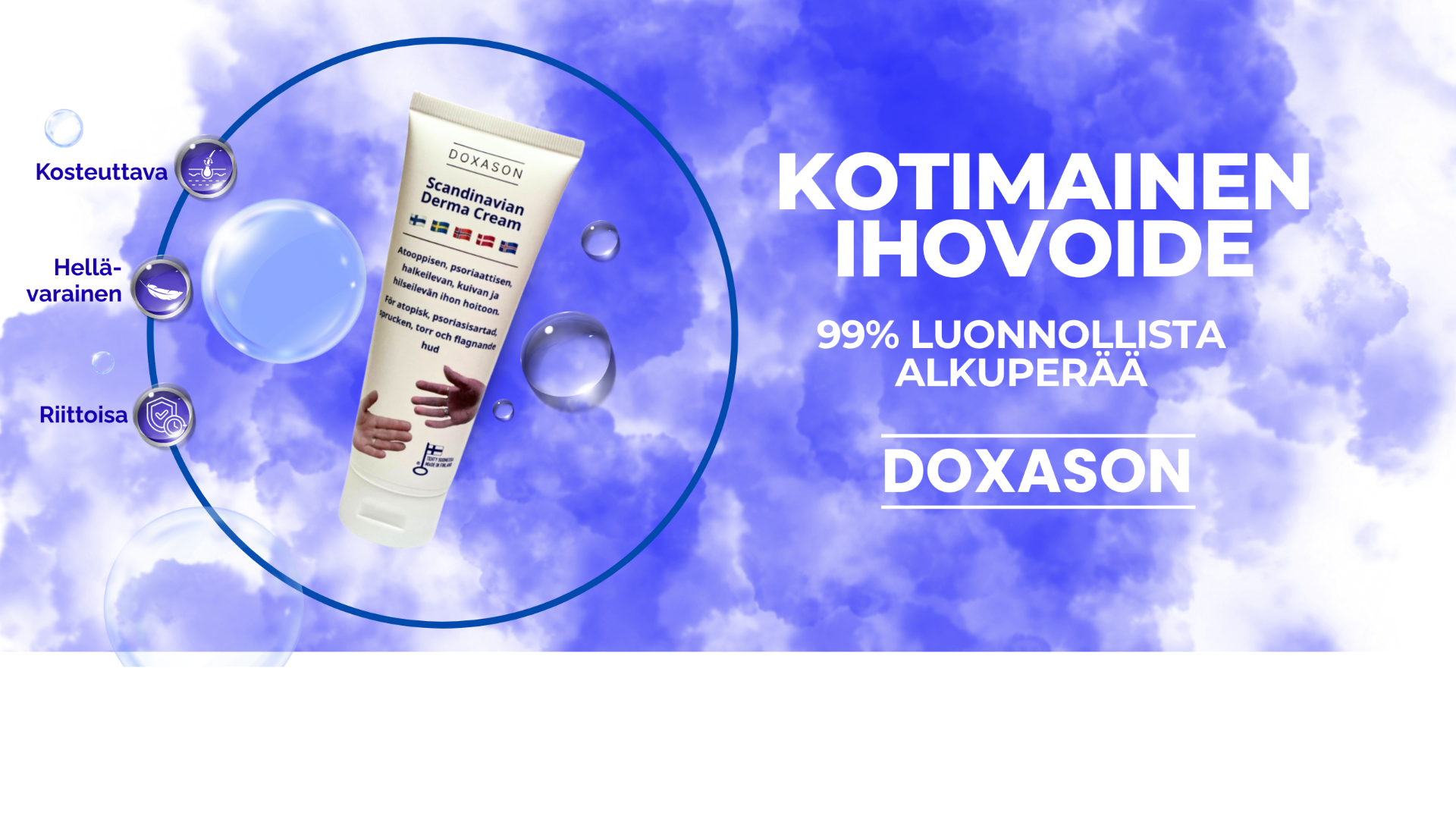 Doxason on kotimainen voidevalmistaja sekä terveystuotteiden jälleenmyyjä. Doxason on syntynyt rakkaudesta parempaan terveyteen ja hyvinvointiin. Esimerkiksi Doxason voide on kehitetty haastaviin erilaisiin ihonhoidon ongelmiin. Tuotteiden palaute on ollut todella hyvää ja olemme pystyneet auttamaan ihmisiä heidän vaivoissaan. Käytämme voiteita valmistaessa eettisesti hankittuja raaka-aineita sekä suosimme raaka-aineiden kotimaisuutta. Tuotteet on testattu ihonhoidon asiantuntijoiden toimesta, mutta emme koskaan käytä eläinkokeita. Tavoitteemme on levittää suomalaisen luonnonkosmetiikan ilosanomaa maailmalle. Samalla haluamme pysyä uskollisina alkuperäiselle visiolle: tarjota puhtaita, luonnonmukaisia tuotteita hyvinvoinnin tueksi.